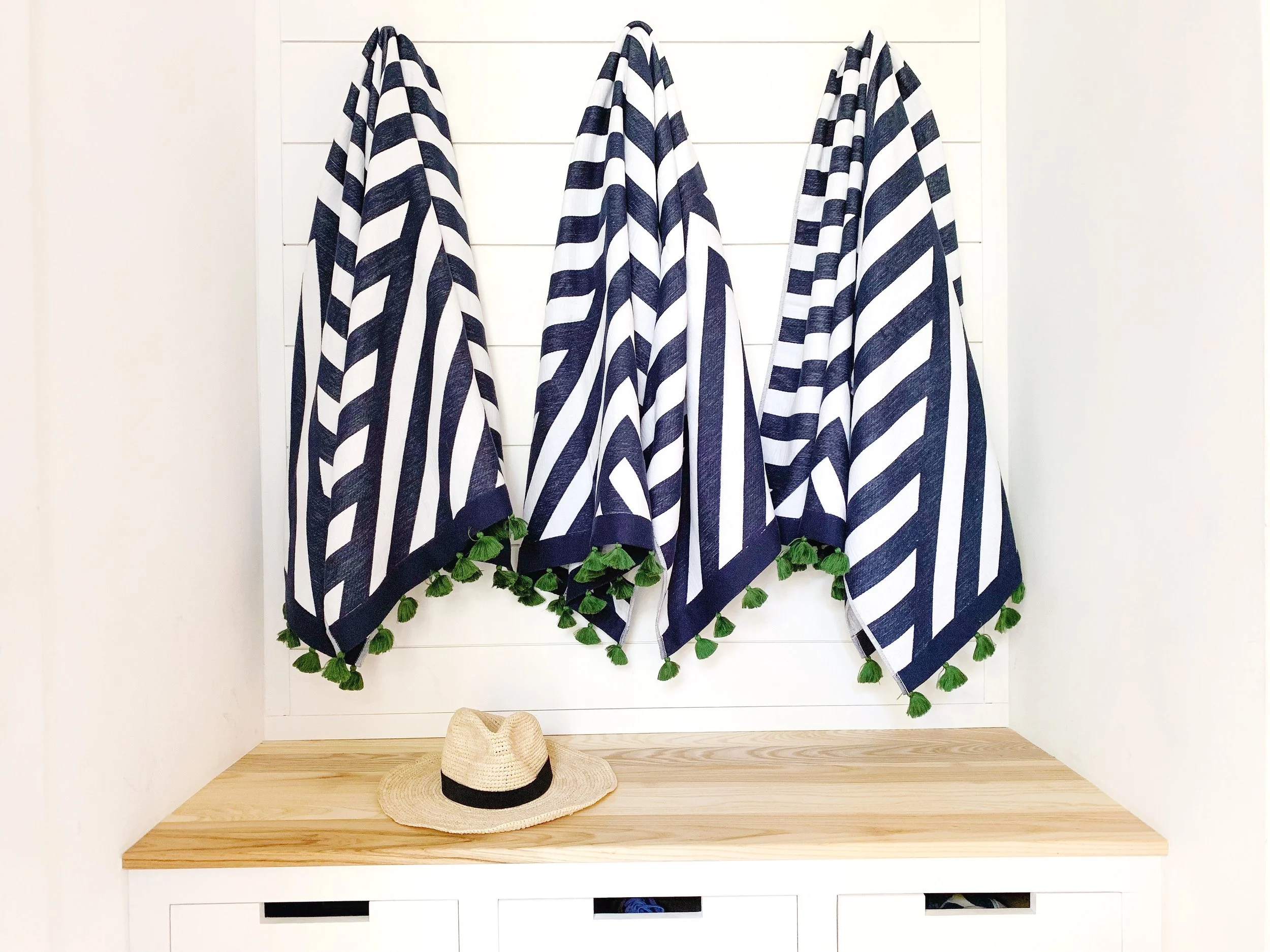 Fast forward to today, and I am a Serena & Lily beach towel enthusiast! Holy cow, are these tasseled beauties luxurious! They’re super soft and perfectly weighted, wash well, dry super quickly, and roll up to a very manageable size to be stored away or easily toted in a bag. I swear they are the best quality towels we’ve ever owned, and bonus points for being the best looking!
