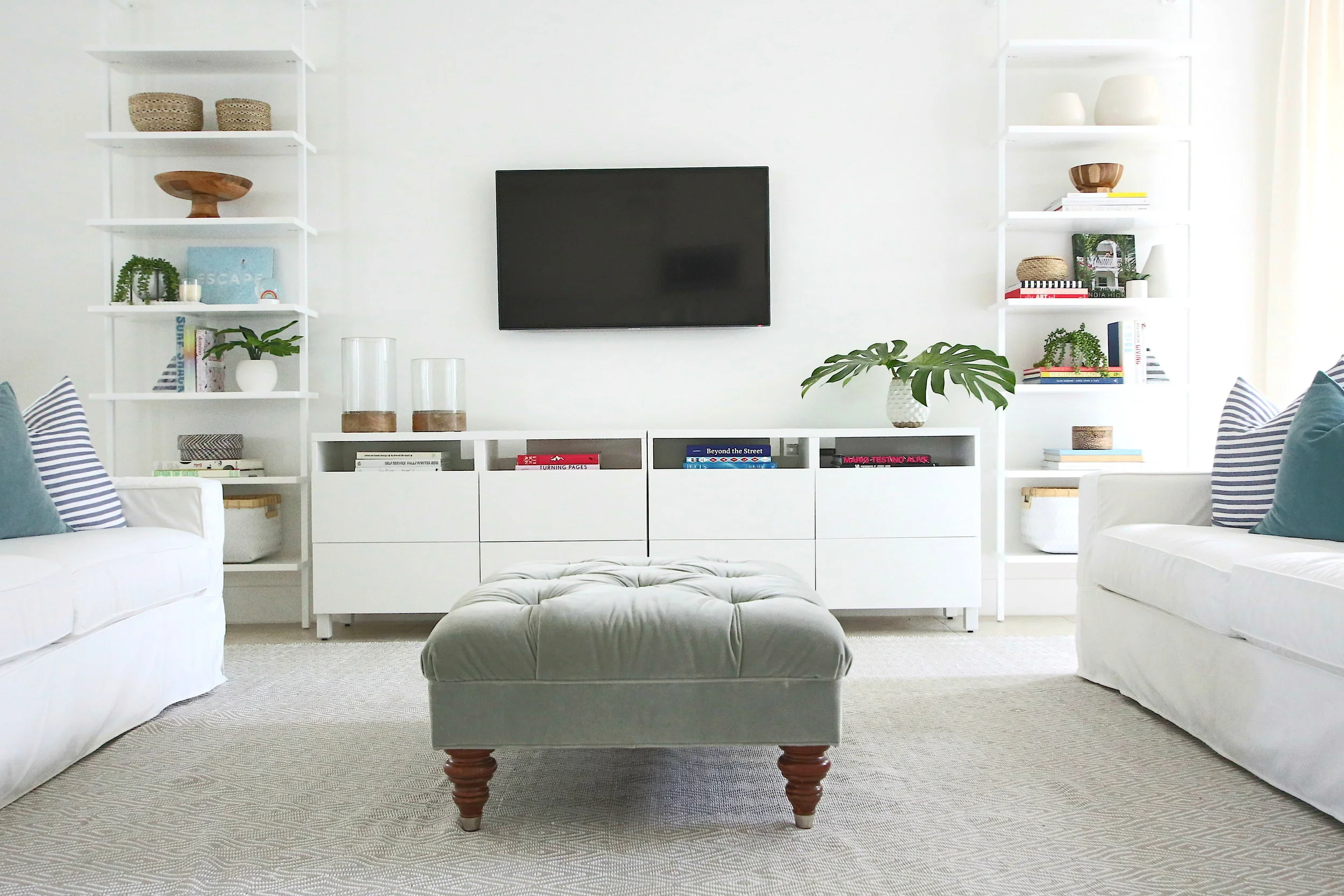 First, let me just put into context that this house is significantly larger than all of our previous homes. The family room alone measures 17’ x 26’ -- which our first one-bedroom apartment in NYC could have easily fit into with wiggle room! -- and our old 9’ x 12’ rug from the townhouse would have been far too small in proportion to square footage.